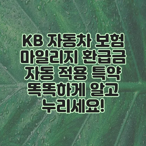 자동차 유지비, 특히 자동차 보험료는 만만치 않은 부담입니다. 혹시 'KB 자동차 보험 마일리지 환급'이라는 꿀팁을 알고 계셨나요? 자동차 보험 마일리지 특약은 운전량이 적은 분들에게는 보험료 절약의 확실한 기회입니다. 이번 포스팅에서는 KB 자동차 보험 마일리지 환급금 자동 적용 특약에 대해 샅샅이 파헤쳐, 여러분 모두가 똑똑하게 혜택을 누릴 수 있도록 돕겠습니다. 복잡하게 느껴질 수 있지만, 차근차근 함께 알아볼까요? KB 자동차 보험 마일리지 할인, 왜 중요할까요? 자동차를 소유하고 유지하는 데 드는 비용은 상상 이상으로 큽니다. 유류비, 수리비, 세금 등 다양한 항목들이 우리의 지갑을 야금야금 갉아먹죠. 그중에서도 자동차 보험료는 매년 갱신해야 하는 고정 지출이라 더욱 부담스럽게 느껴집니다. 하지..